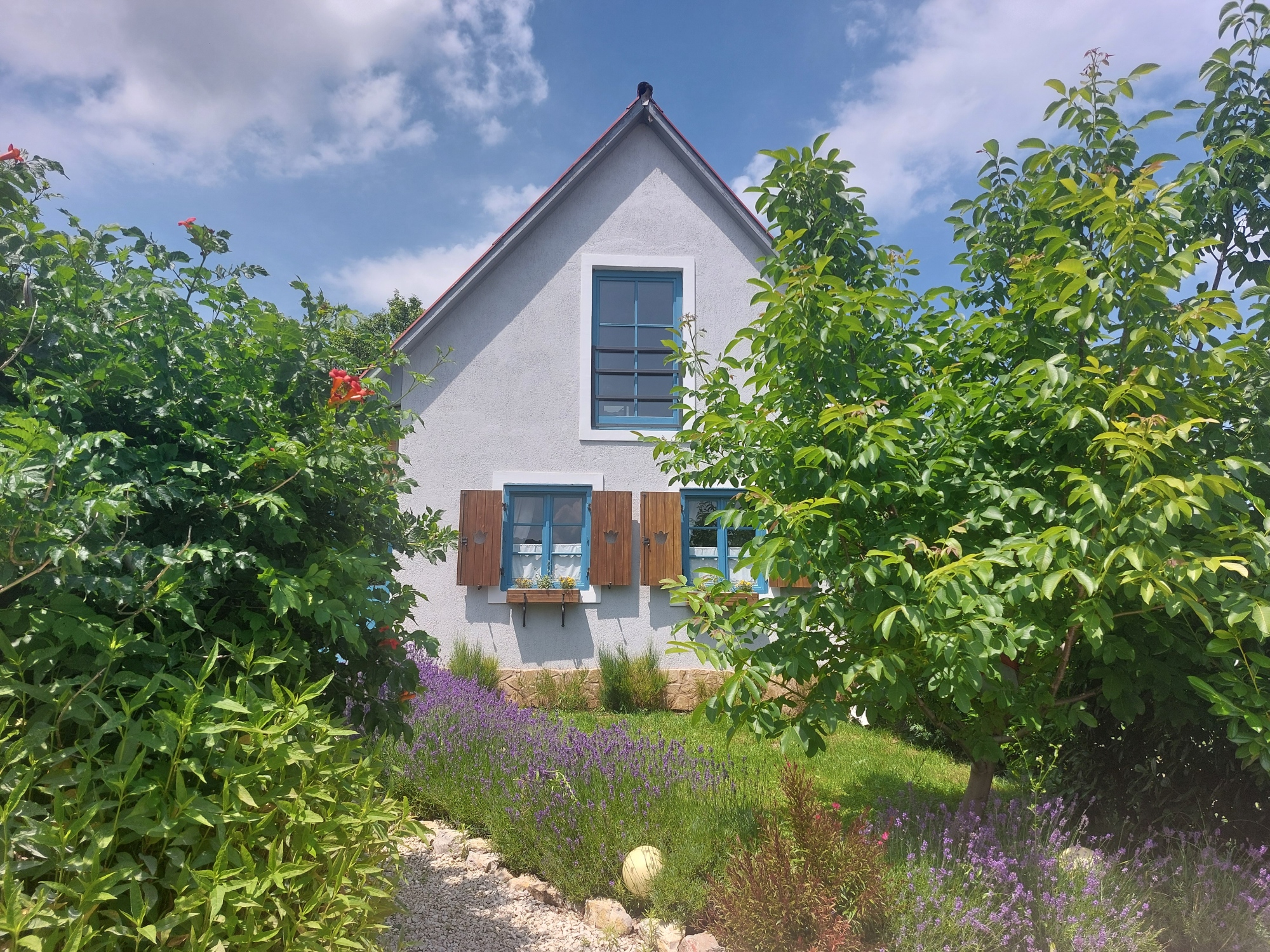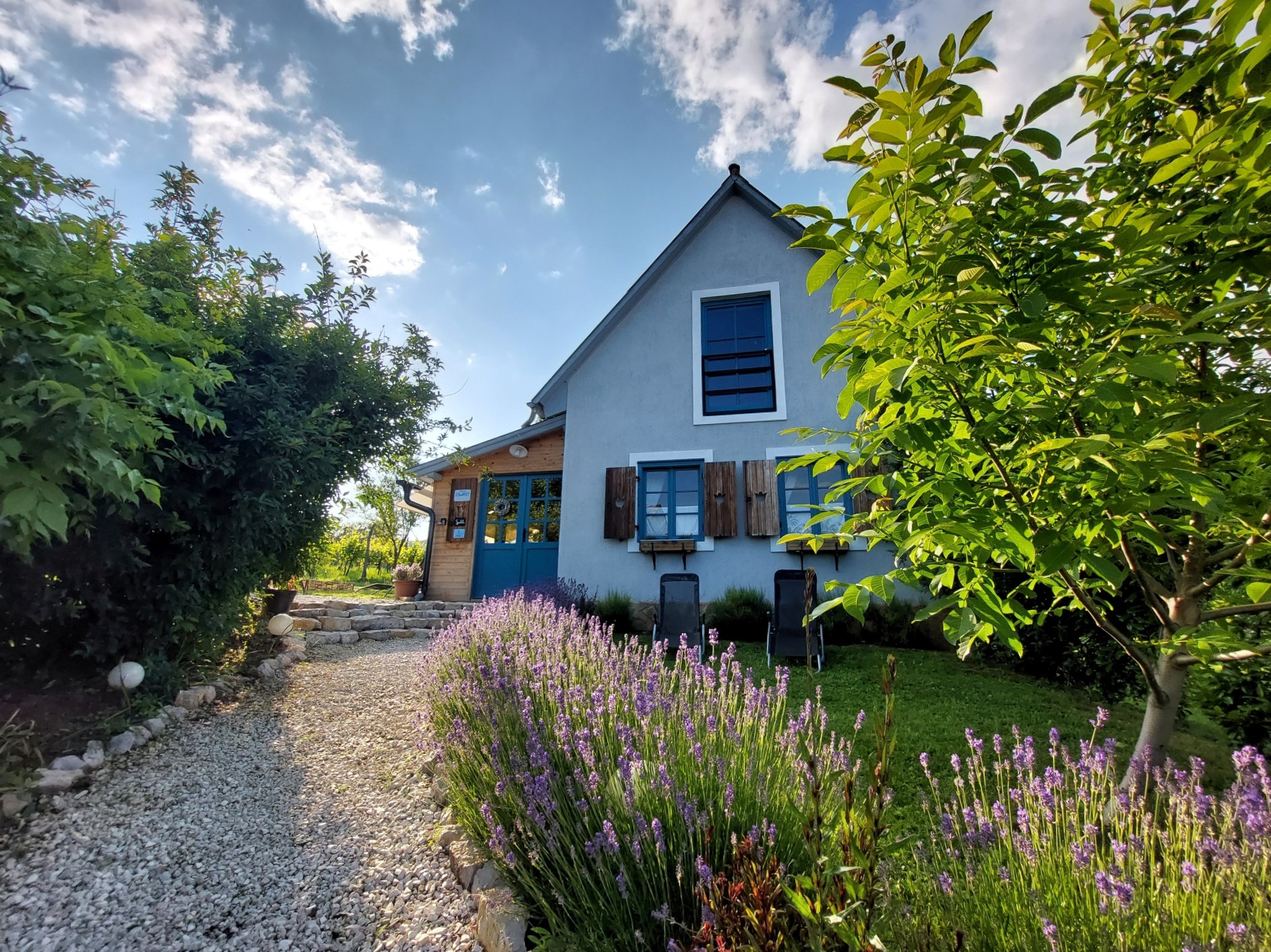 Im Frühjahr 2021 haben wir unser neues, romantisch gestaltetes Gästehaus in einer ruhigen, aber bewohnten ländlichen Gegend in Pécsely eröffnet. Die Unterkunft ist über eine leicht ansteigende, mit Kies bedeckte Straße erreichbar, auch für höhere Fahrzeuge geeignet.